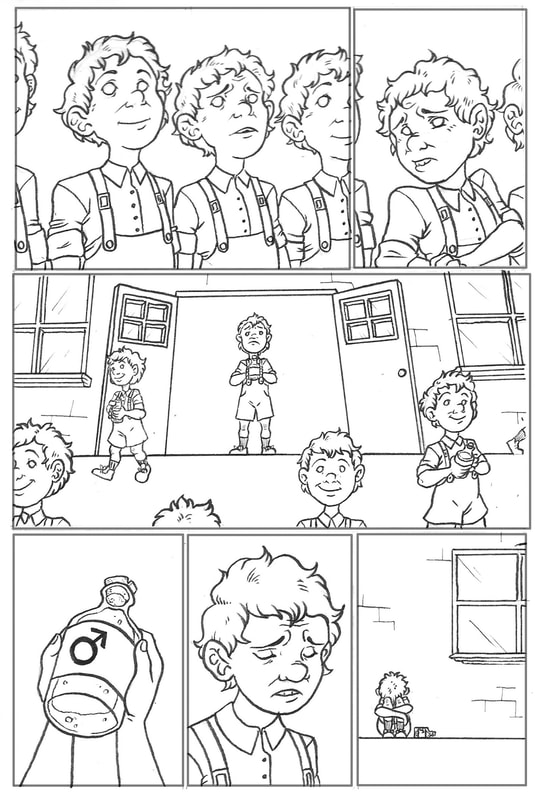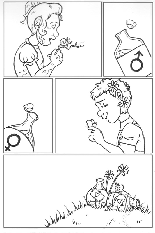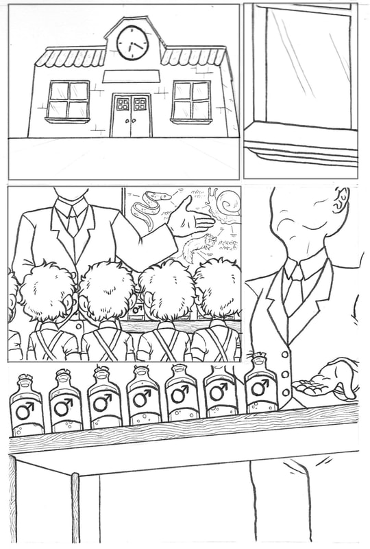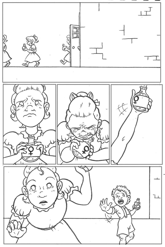 We've just completed our first project this semester. In groups, we were to make a 9 page comic based on our interpretation of the nursery rhyme we were assigned. For our group, our nursery rhyme was 'What Are Little Boys Made Of'.