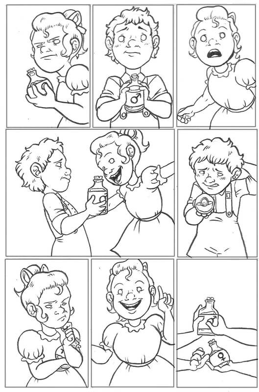 - COMIC COMPOSITION: from the reading materials we were given, I learned a lot about the mechanics of comics and how they actually work. A lot more work goes into the layout than I was previously aware of; the size and shape of the panels, the way they fit together, and the placement of their contents is key to creating a good flow. Something I found particularly useful was researching the "line of sight" method; an implied directional line that guides the eye smoothly with subtle, subconscious cues. These cues can be a character's position/movement/line of sight, visual background clues, or dialogue placement. Careful and deliberate placement of these cues moves the reader's eye smoothly from panel to panel, focal point to focal point, creating flow. In addition, panel size/shape/content can be manipulated to convey different impressions, senses and emotions.