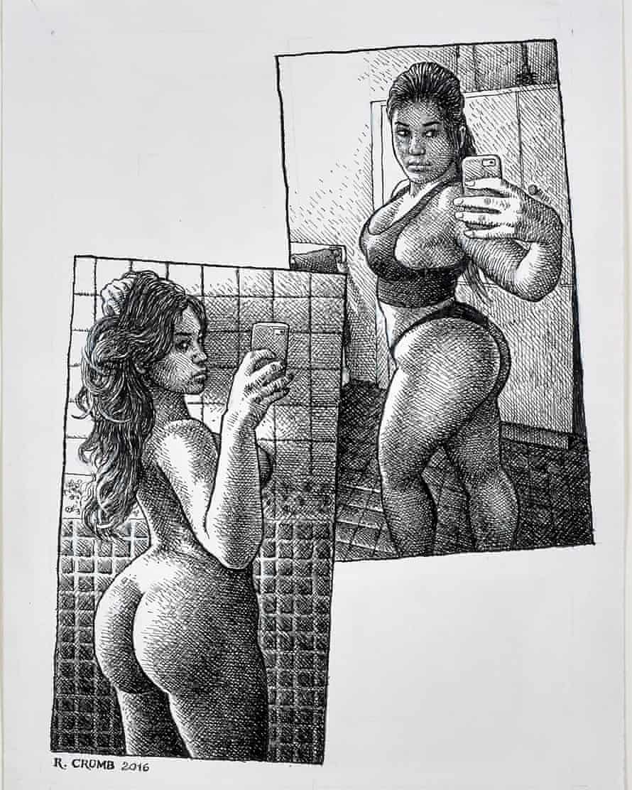 His father was a military illustrator, suggesting a strict (and religious) upbringing, and his mother reportedly abused diet pills and other medications. He had four siblings - two sisters, and two brothers (both of whom suffered from mental illnesses also related to sexual fixation and urges). He attended a Catholic school, taught by nuns and teachers who discouraged his interest in cartoons. All this combines into what I personally interpret as a horrendously stressful and oppressive environment for a growing child - one which could fuel hatred and mental stability as an adult. Crumb has confirmed some of this in interviews. He has spoken of his painful struggle to fit in during his adolescence, stating that it allowed him to develop his own aesthetic ideals contrary to Hollywood's concept of attractiveness. With much of his work featuring graphic, sexual imagery of women, he admits that the fixation is partly fuelled by a hatred for the female sex. He states that the nuns terrified him, he was rejected by girls throughout his youth... That alongside the knowledge of the image he probably had of his addict mother as a child, you can kind of see a root to his anger towards women in general.