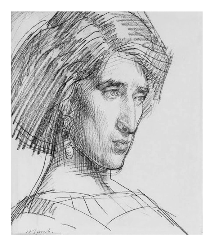 Before he was appointed as a full-time war artist during WWII, Lamb was well-known for his rather unusual portraits. He produced many oil paintings, his most famous being 'Death of a Peasant' (1911), which employed the use of bold colours and dramatic lighting. He was also known for his pencil sketches, such as the one we were tasked to copy - 'Portrait of Lady Ottoline Morrell, 1910-11'.