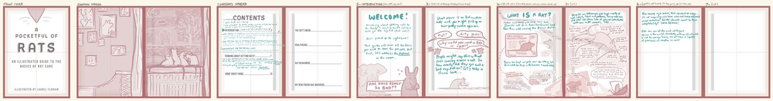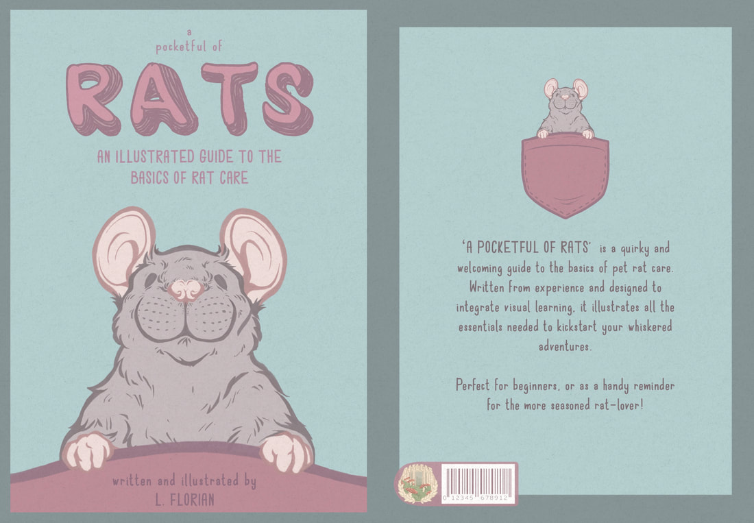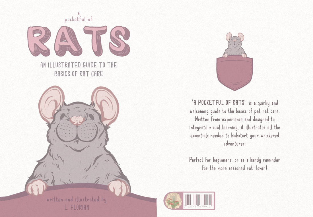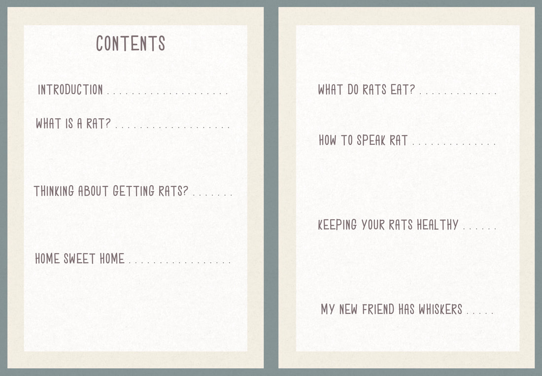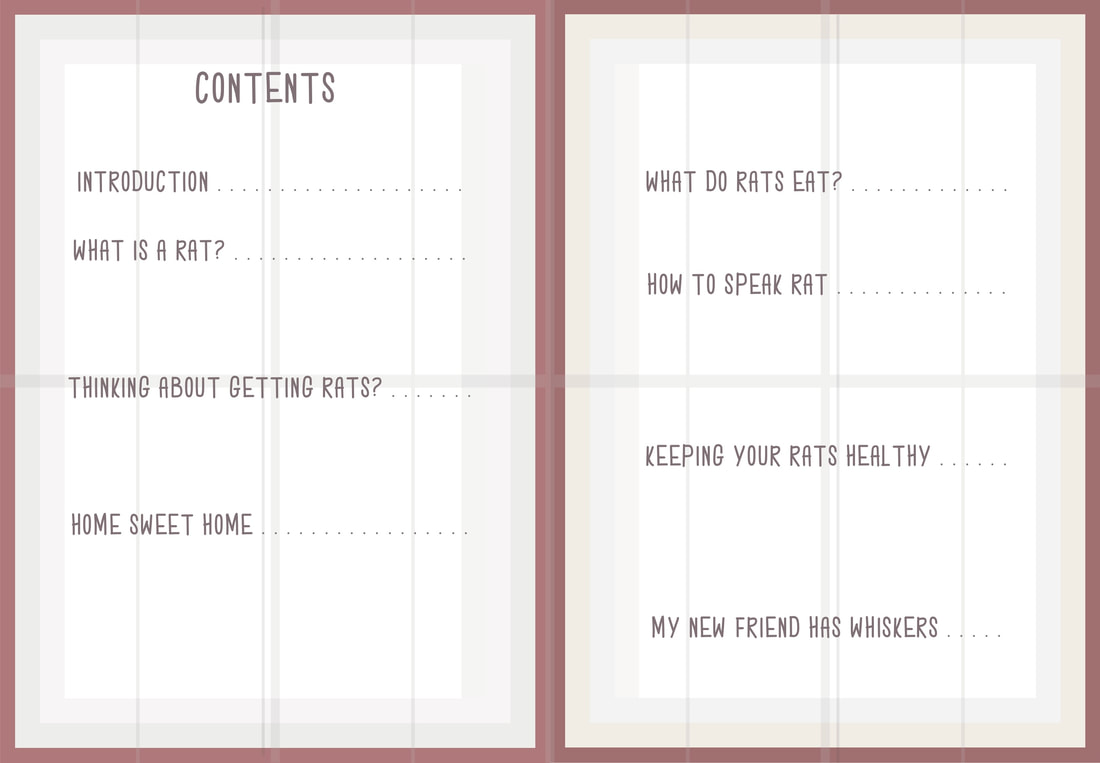 I designed a decorative endpage spread based on my own rats on their windowsill, to add a personal touch - I thought that would be good for readers to know their guide was written by someone with their own first-hand experience.