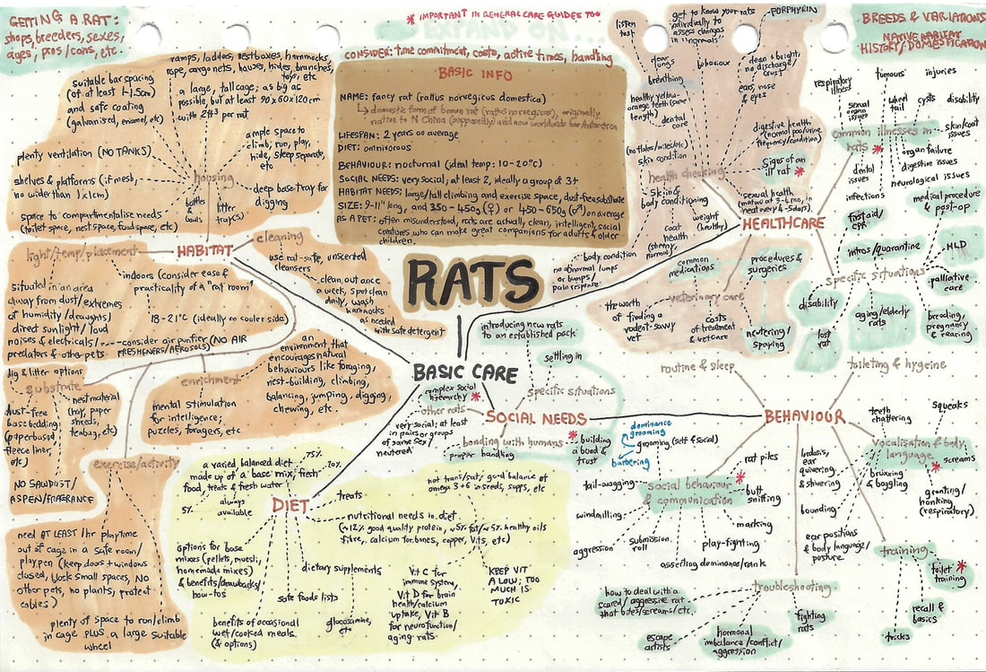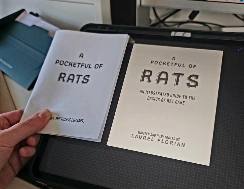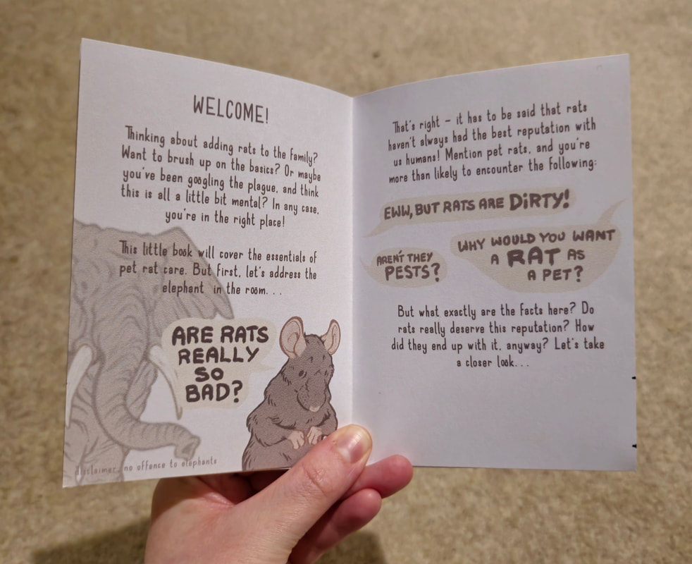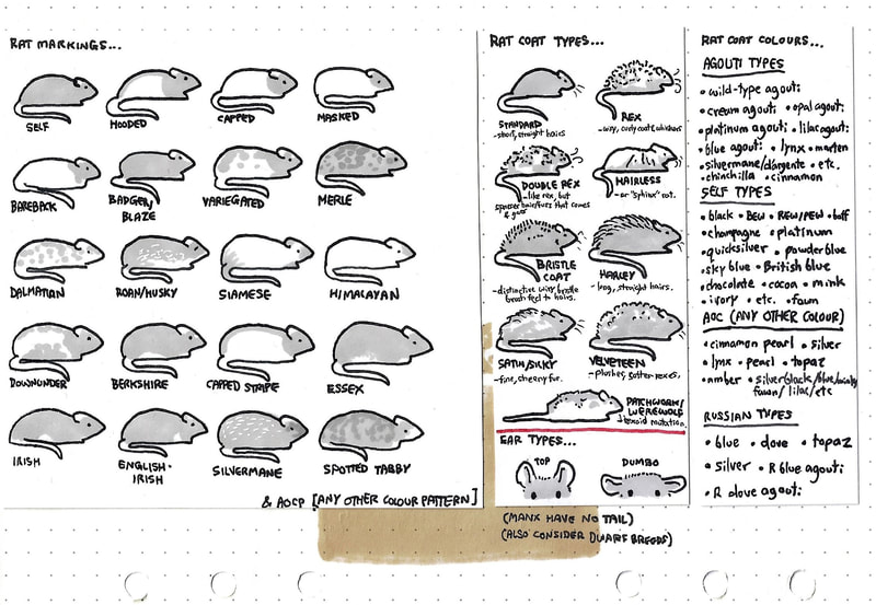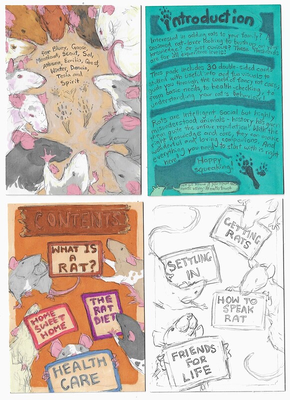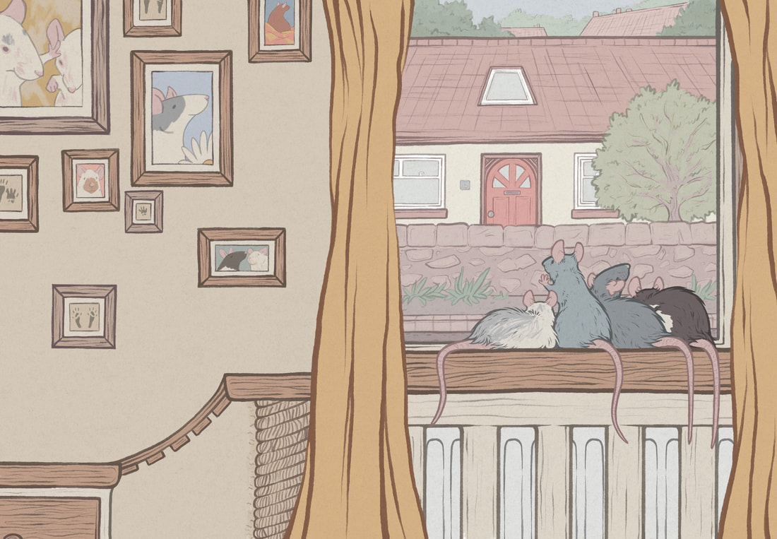 I designed a decorative endpage spread based on my own rats on their windowsill, to add a personal touch - I thought that would be good for readers to know their guide was written by someone with their own first-hand experience.