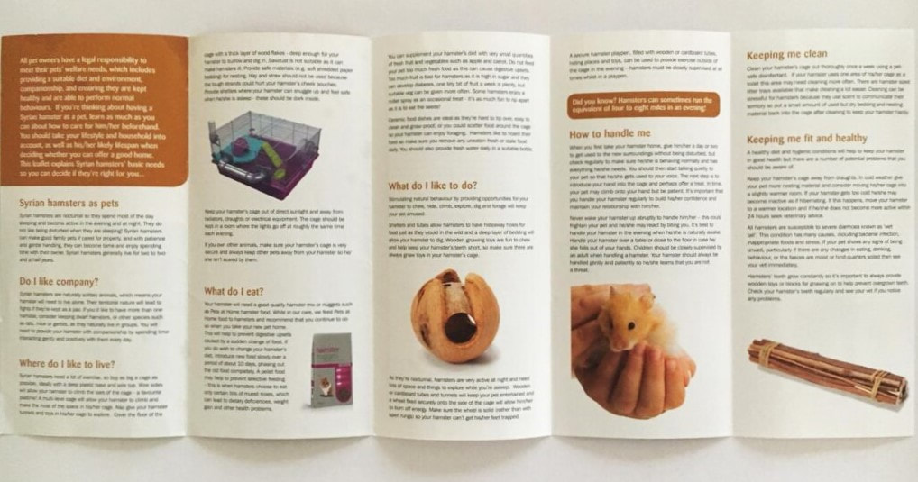 a recent example of a commercial petcare leaflet (Pets At Home / RSPCA)