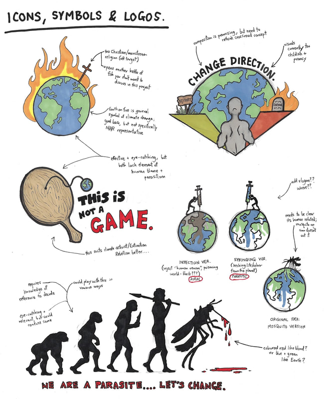 To have icons and symbols I could use in the protest materials, I had to design these first. Using ideas from my initial notes combined with inspiration from the reference bank, I made up an analogue sheet of concepts. These were then moved to a digital platform to refine and finalise.